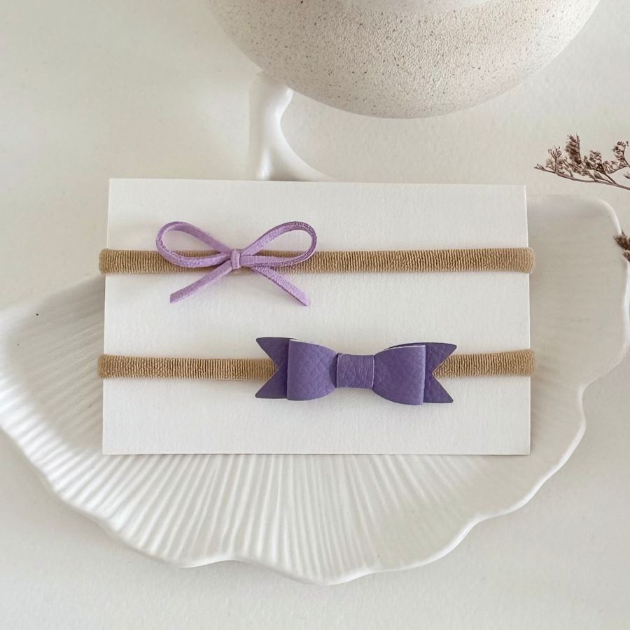Komplet dveh naglavnih trakcev z minimalističnima pentljicama v vijola odtenkih.