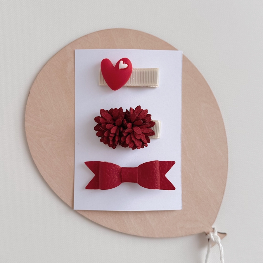 Komplet treh mini špangic za prve laske v rdečih odtenkih.