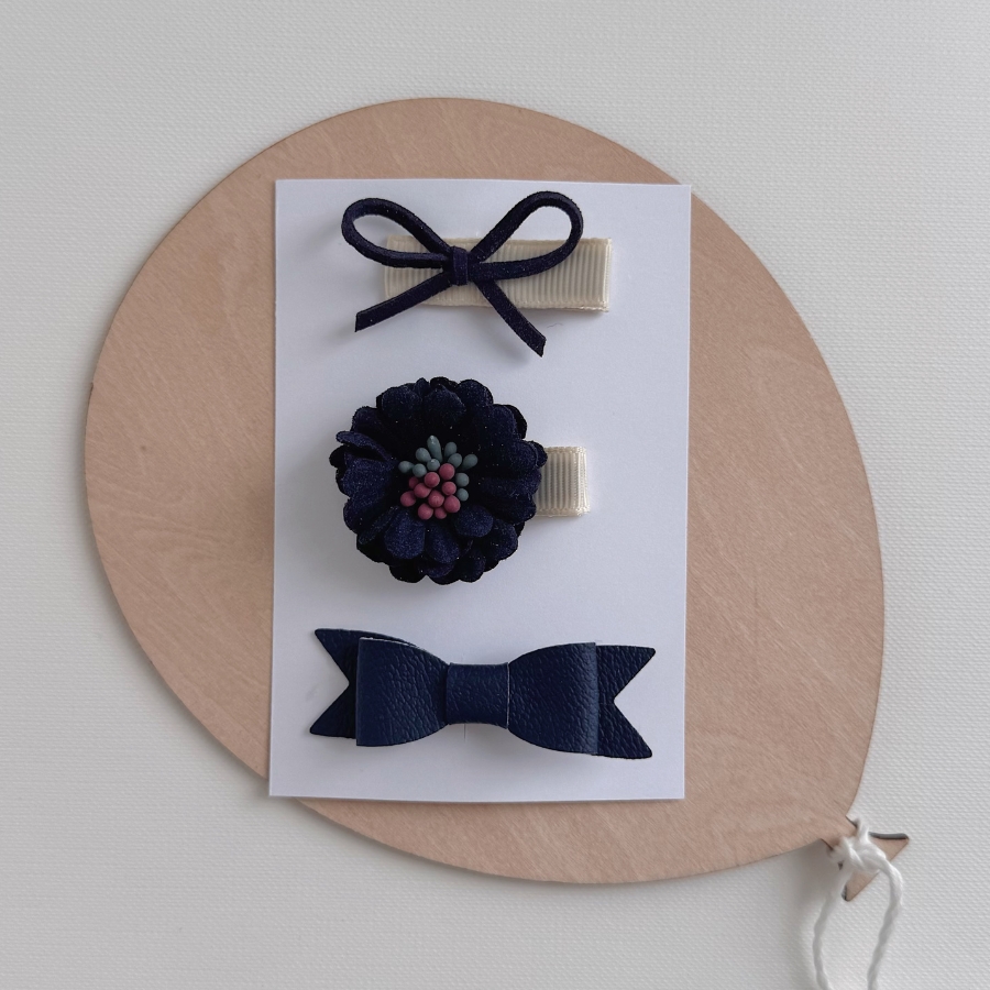 Komplet treh mini špangic za prve laske v temno modrih odtenkih.