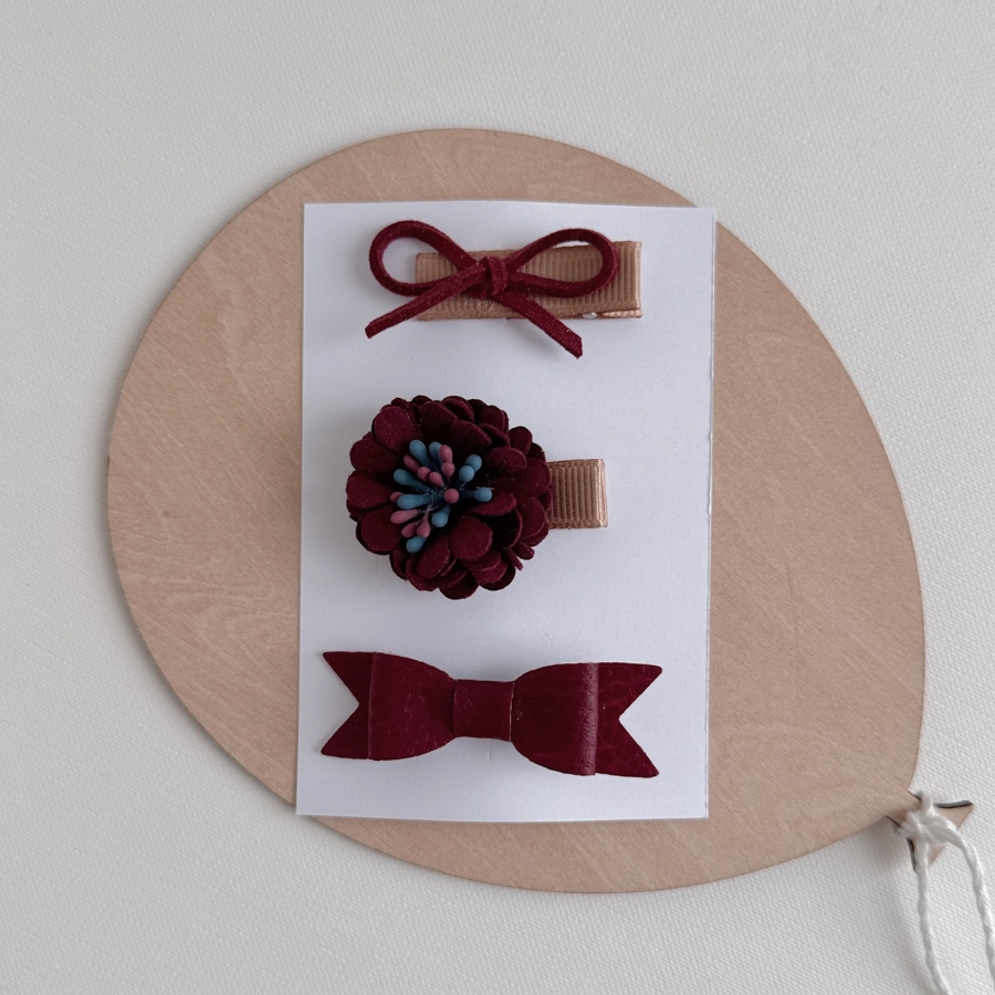 Komplet treh mini špangic za prve laske v bordo rdečih odtenkih.